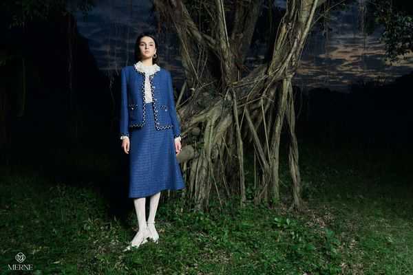 MERNE khai thác Tweed trong những thiết kế vest, áo khoác mang phom dáng gọn gàng nhưng không cứng nhắc. Từ Tweed dệt sợi kim tuyến ánh nhẹ, Tweed xanh trầm được viền dây tết thủ công, đến Tweed trắng sợi nổi thanh lịch – mỗi biến thể đều tôn vinh khí chất người phụ nữ: tự tin, độc lập và chuẩn mực theo cách rất riêng.