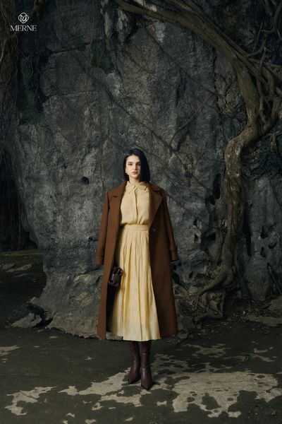 Ngược lại, dạ lông cừu và dạ ép là lớp bảo vệ ấm áp, vững chãi cho mùa đông. MERNE lựa chọn dạ cao cấp để giữ nhiệt tốt nhưng vẫn nhẹ, giúp người mặc luôn giữ được sự thanh lịch, ngay cả trong những ngày lạnh nhất.